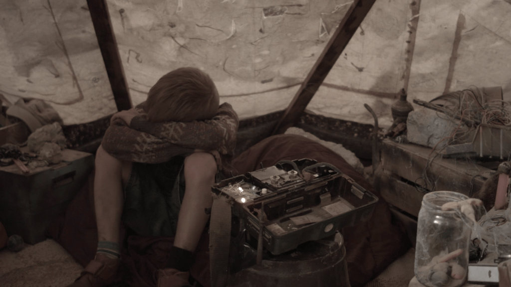 Ein Junge sitzt in einem Stoffzelt, vor sich eine Apparatur, Lichter blinken, Drähte schauen hervor. „Tata! Mozeš li me čuti sada?“ ruft er in den Hörer, „Kannst du mich jetzt hören, Papa?“.